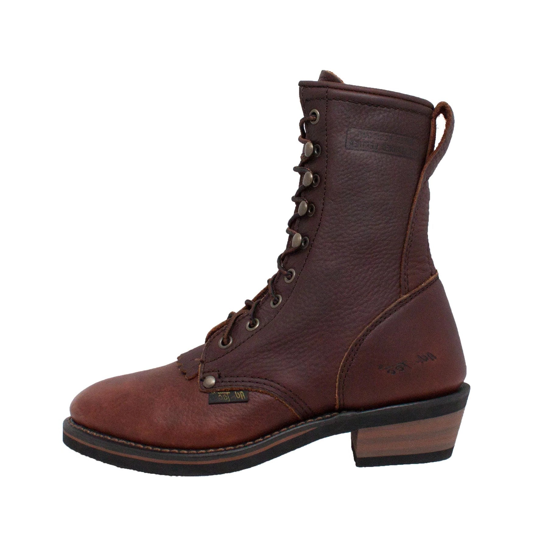 Our women's chestnut packer boots are a popular choice for those seeking both style and function. Made with high-quality full-grain tumbled leather, these boots are both durable and beautiful. The chestnut color is a classic and neutral shade that will complement any outfit, making these boots a versatile addition to your wardrobe. The boots also feature solid brass hooks and eyelets that resist breakage and corrosion, as well as Goodyear Welt construction for added durability. The rubber outsole provides excellent traction and durability, making these boots ideal for a variety of settings. The PU orthotic removable cushion insole adds extra comfort for all-day wear, and the plain soft toe offers a classic look. Whether you're tackling a tough work day or running errands, these boots are up for the job. Order your pair today and step out in style!