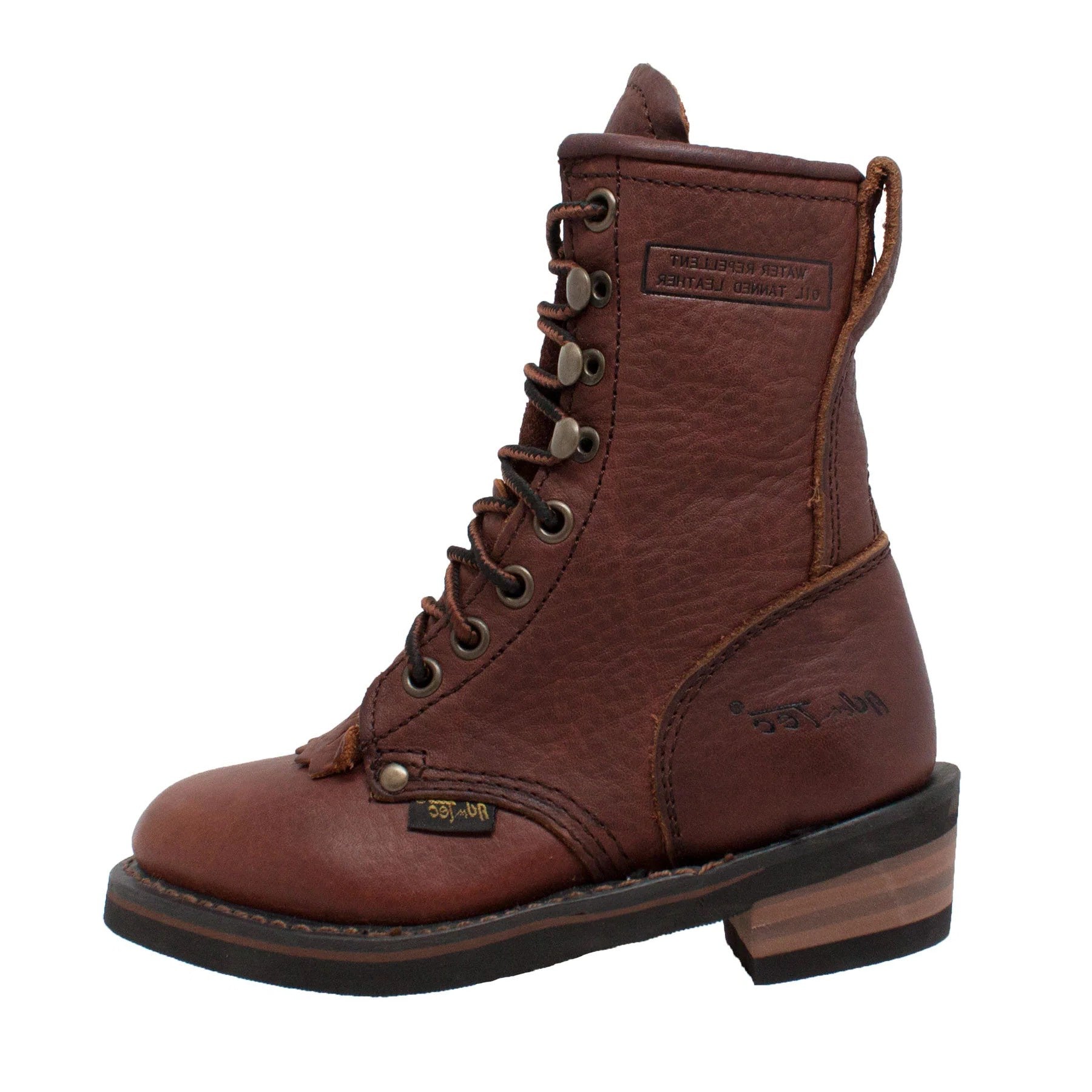 The perfect footwear for your little adventurer! These boots are specially designed for kids, with the same rugged and classic packer style as our adult version. Made with premium materials, including genuine leather and quality craftsmanship, these boots are built to last. The 9" height provides excellent ankle support for growing feet, while the cushioned insole ensures all-day comfort. The oil-resistant rubber outsole offers reliable traction, making them ideal for outdoor activities and adventures. With their timeless design and durability, these packer boots are perfect for little cowboys and cowgirls who love to explore and play. Get your child ready for their next outdoor adventure with our AdTec Children's Packer Boots!