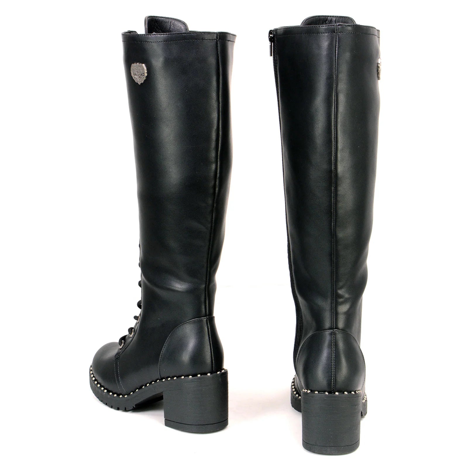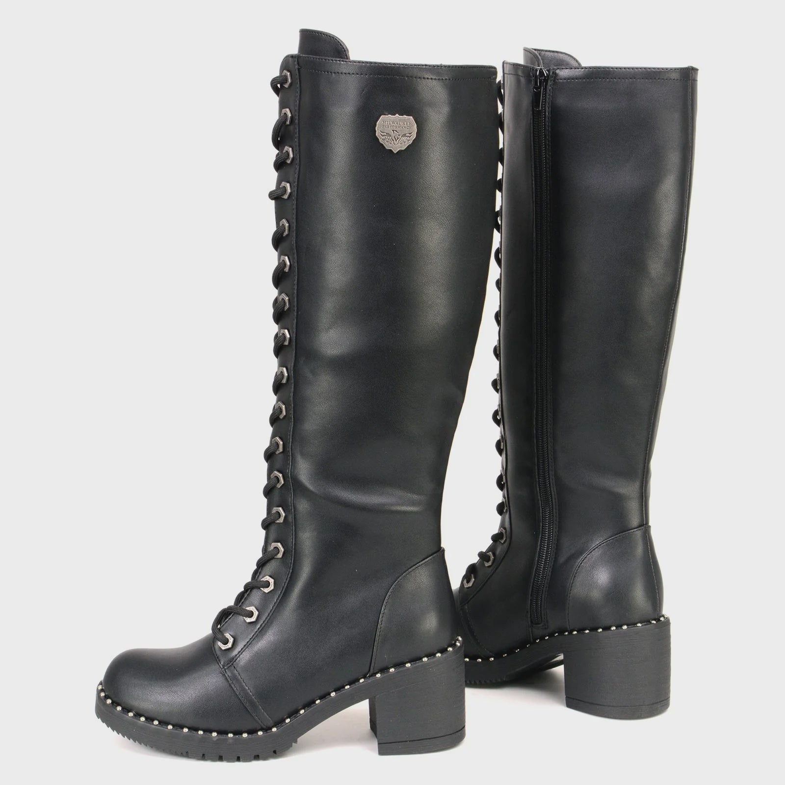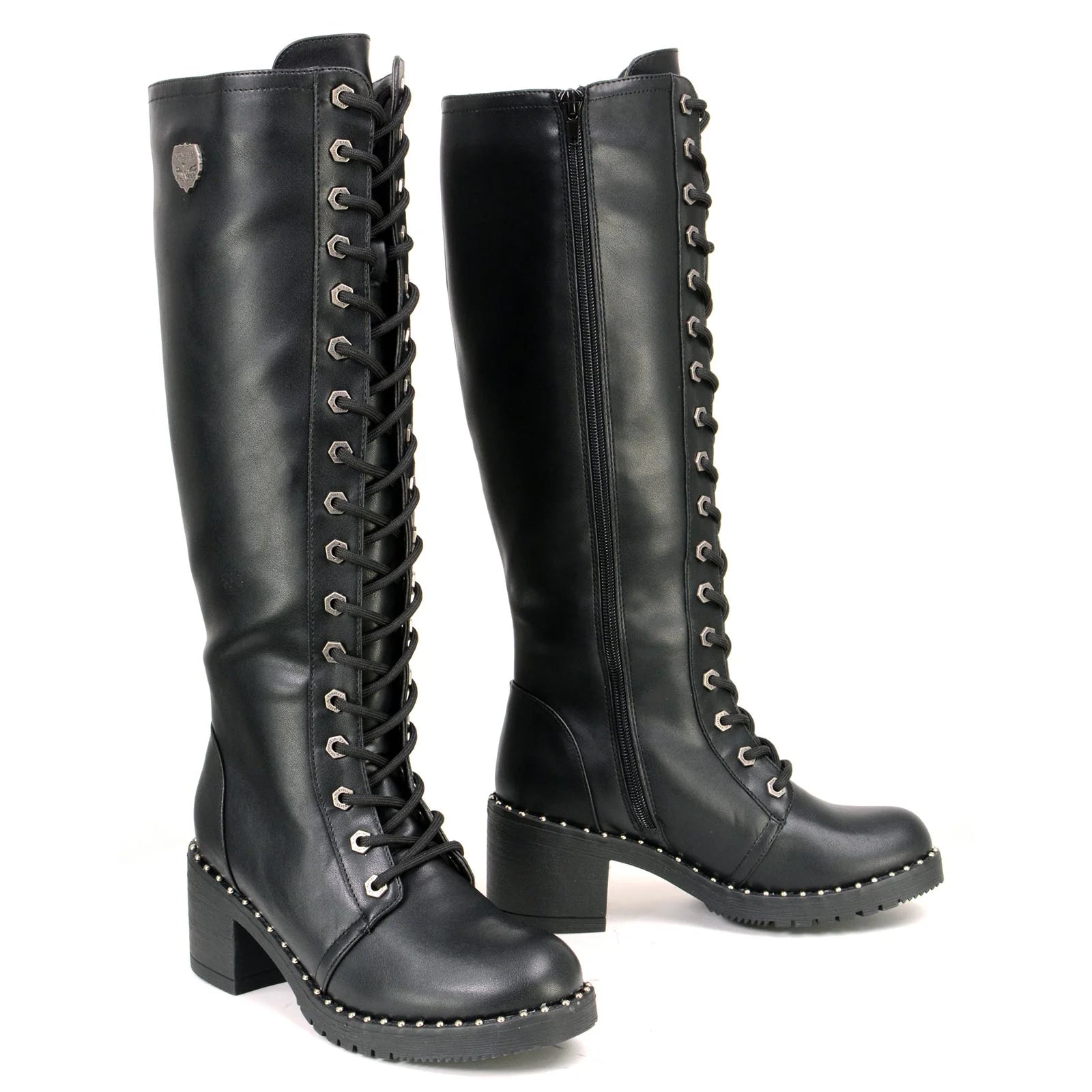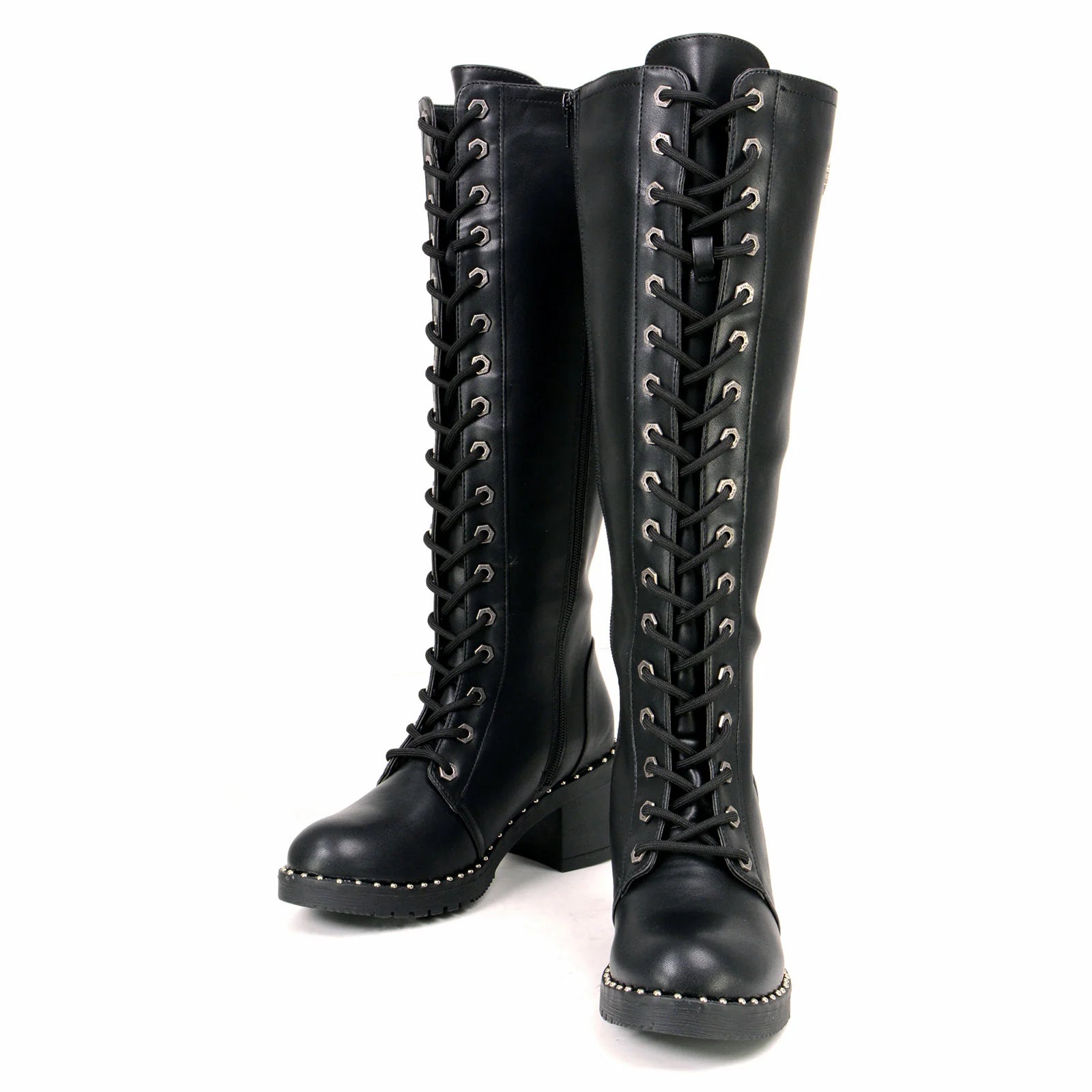 MILWAUKEE LEATHER - WOMEN'S BLACK LACE-UP TALL BIKER FASHION BOOTS WITH PLATFORM HEEL & STUDS - MBL9442